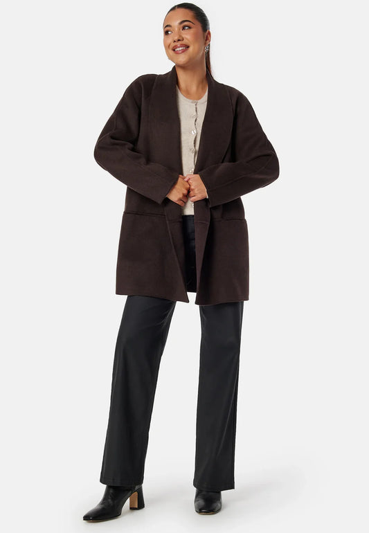Dames Korte Jas | Donkerbruin | Wolmix | Met Ceintuur