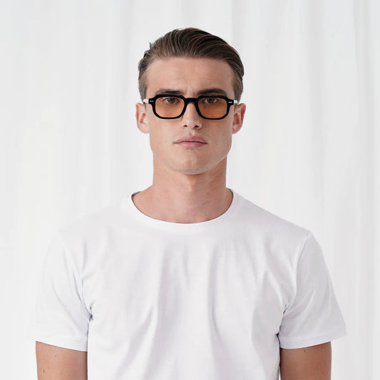 Amber | Zonnebril met amber glazen | Zwart montuur