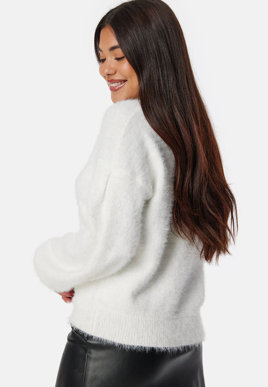 White Women's Sweater | Fluffy Soft Fabric | Buttons