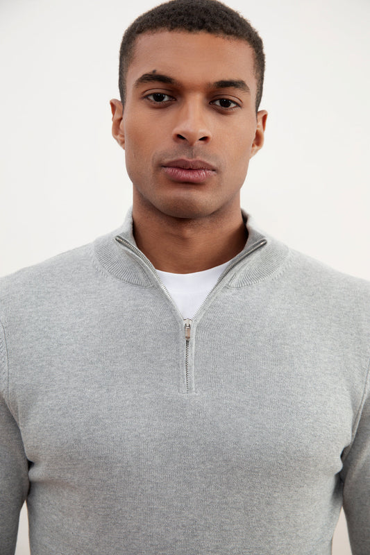Grey heather English rib half-zip sweater