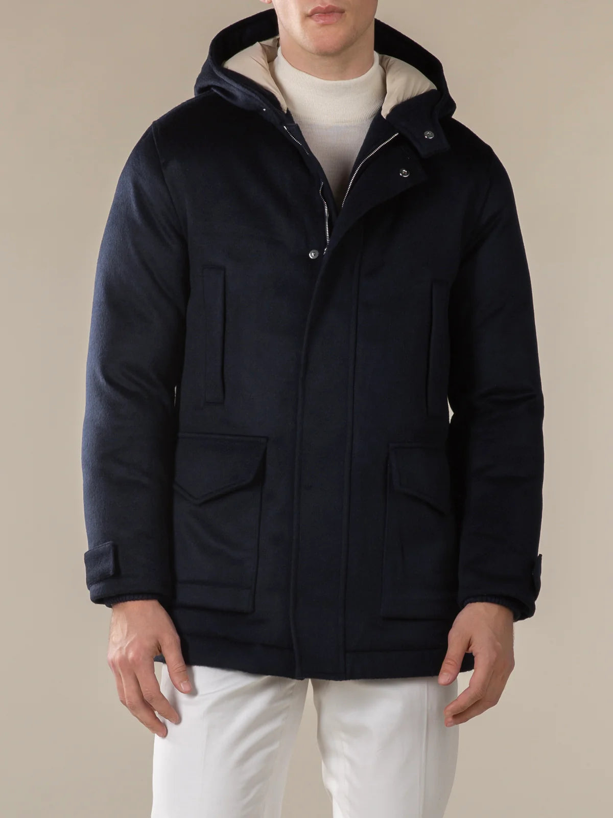 Men's Dark Blue Winter Jacket | Quilted Hood | Stylish & Warm