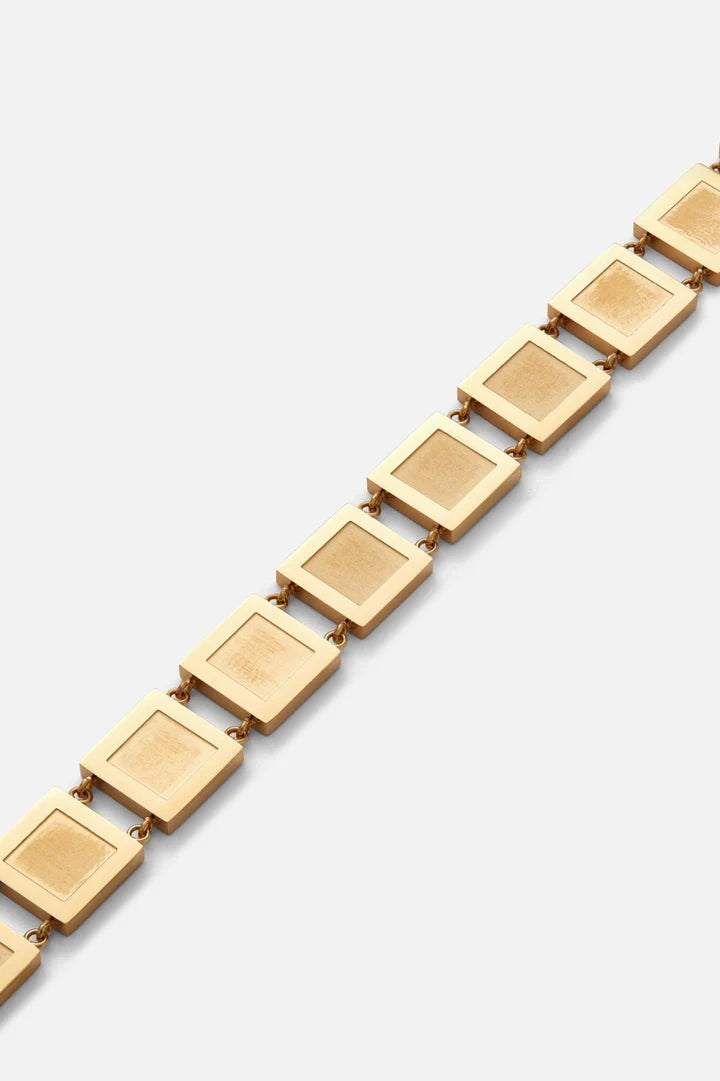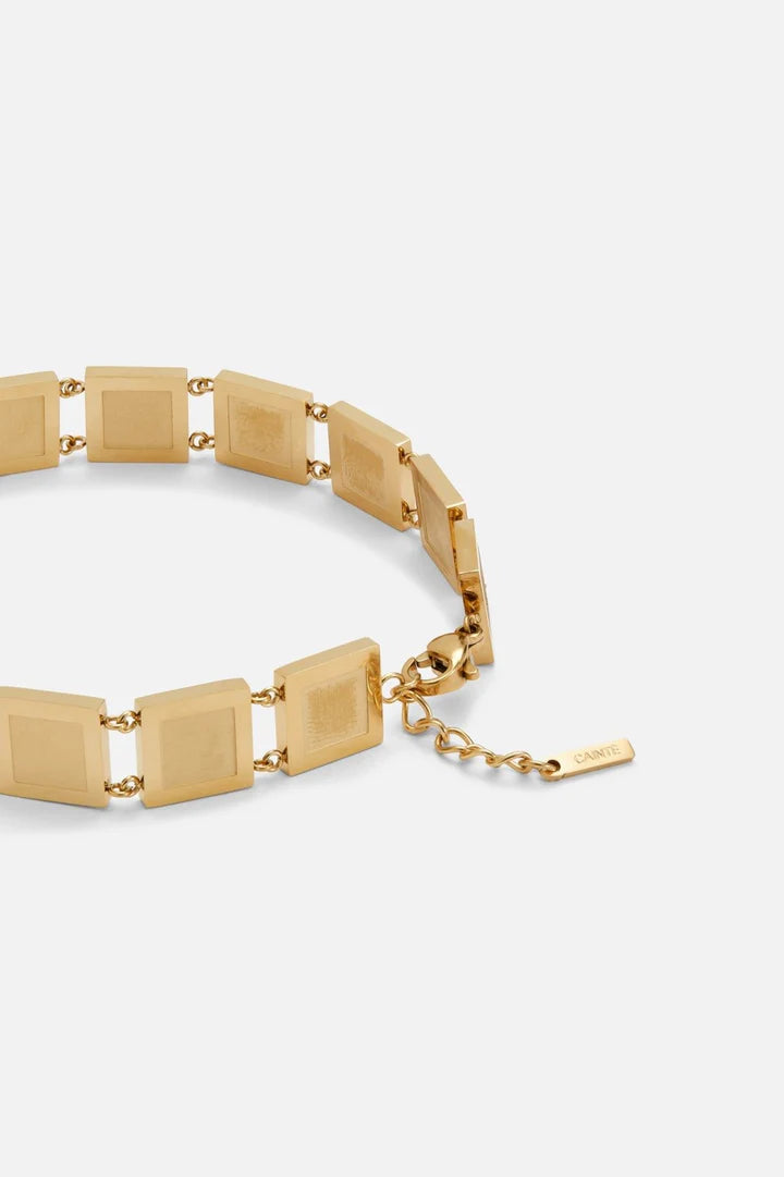 De vierkante schakels geven de armband een krachtige, moderne uitstraling.