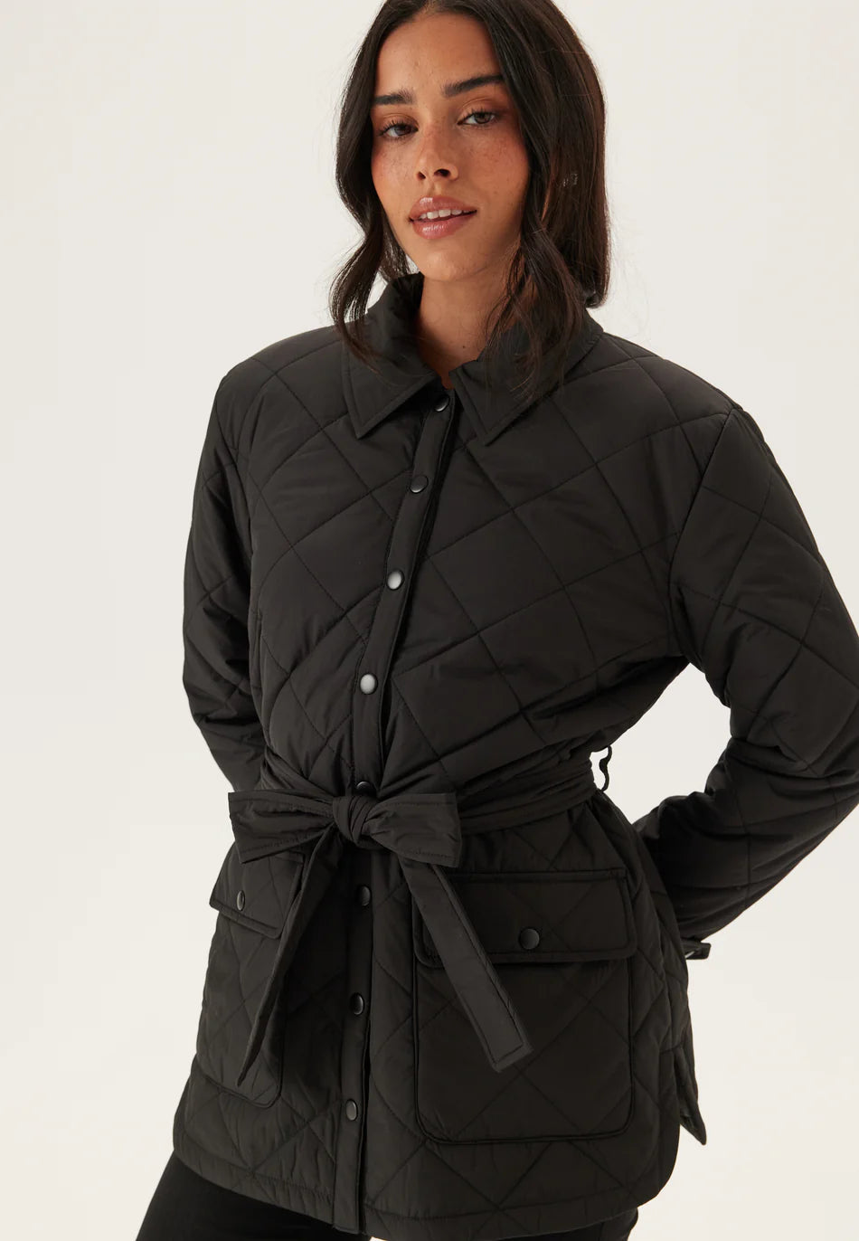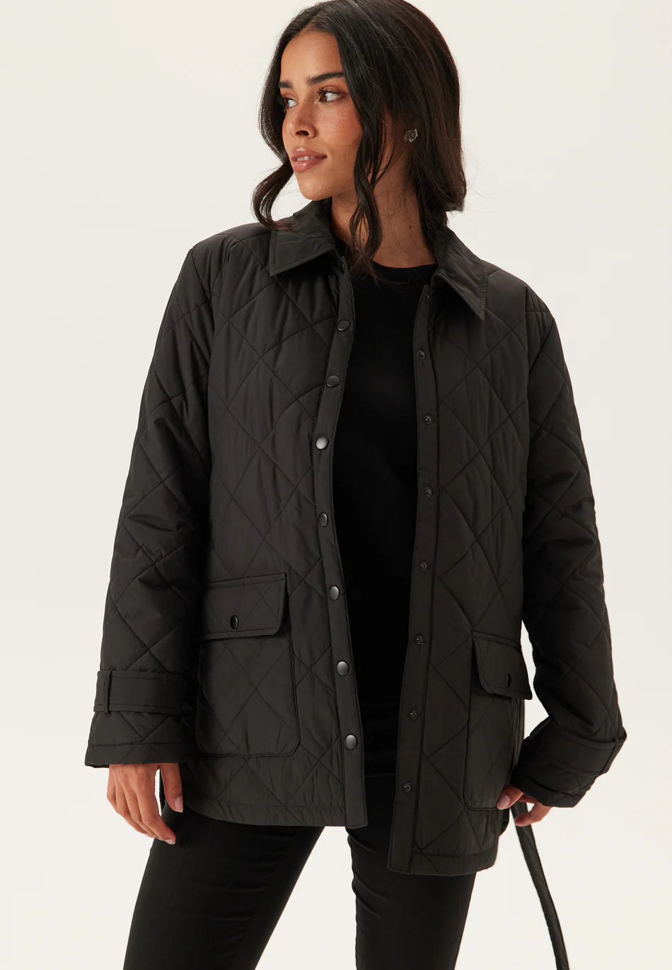 Dames Gewatteerde Jas Zwart | Drukknopen | Ruitpatroon | Voorzakken