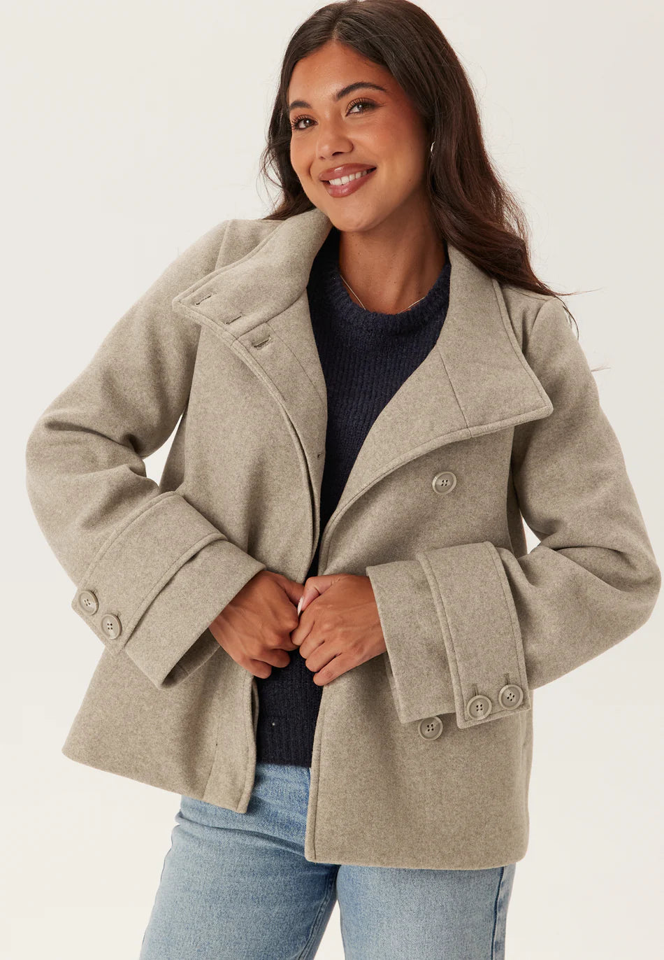 Deze grijze damesjas is een tijdloze toevoeging aan je garderobe. Het ontwerp met hoge kraag en knoopsluiting geeft een moderne, elegante uitstraling, terwijl de wolmix-stof heerlijk warm en comfortabel aanvoelt. Combineer casual met jeans of chic over een jurk: deze jas past bij elke look. Dankzij de stijlvolle details en hoogwaardige afwerking blijf je er niet alleen warm, maar ook verzorgd en trendy uitzien. En met onze 30 dagen retourgarantie shop je zonder zorgen.