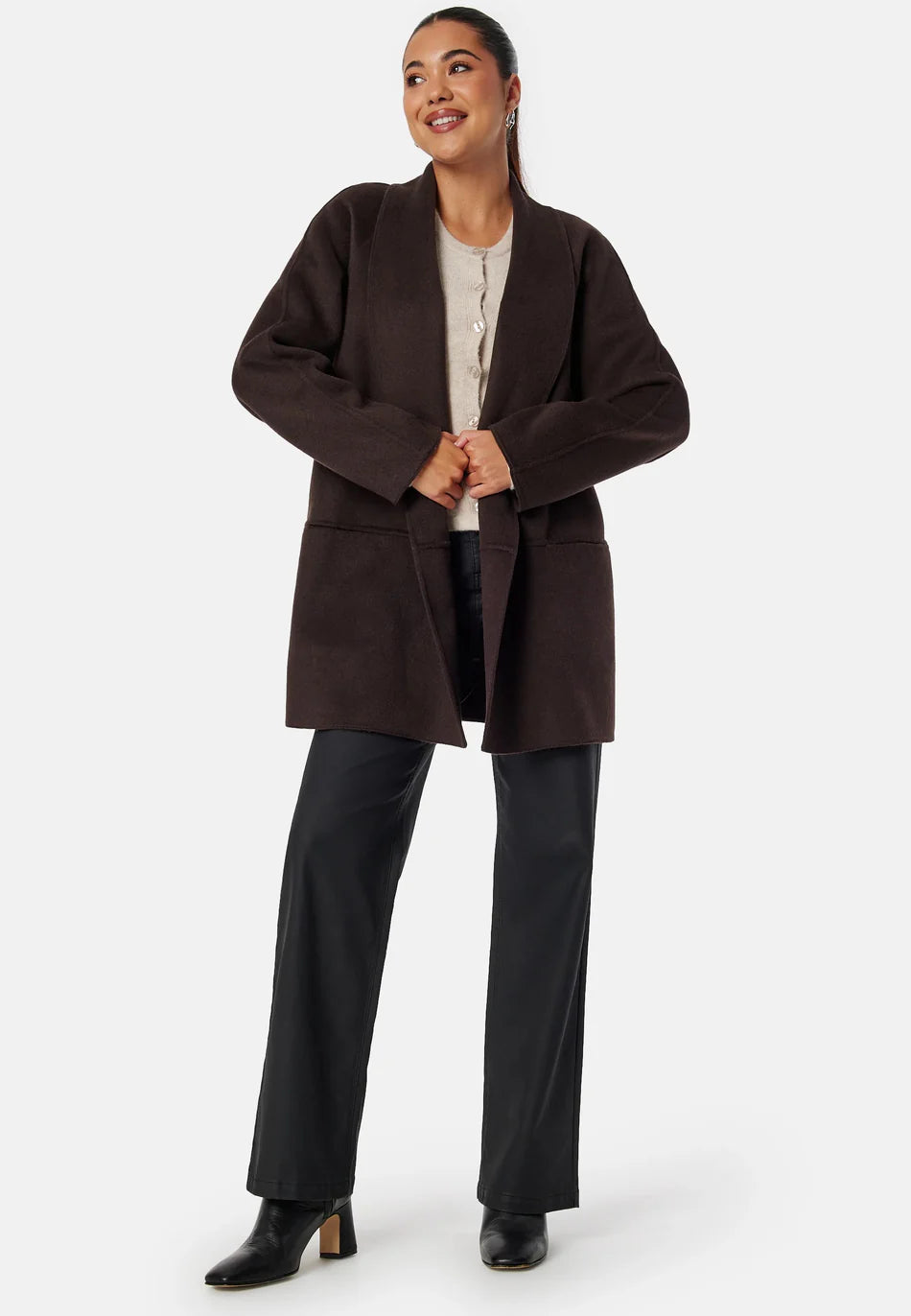 Deze donkerbruine korte jas is gemaakt van een wolmix, waardoor hij warm, zacht en comfortabel is. De jas heeft een losse pasvorm met een ceintuur in de taille en grote zakken. Perfect om zowel casual als netjes te dragen. Met 30 dagen retourgarantie koop je zonder zorgen.