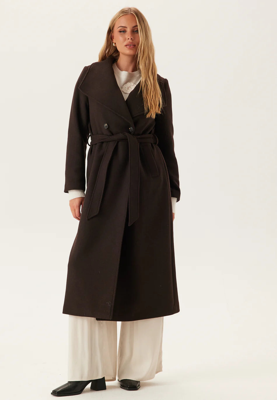Deze donkerbruine jas is gemaakt van een wolmix. Dat betekent dat de jas zacht, warm en stevig is. De jas heeft een lange pasvorm, een brede kraag en een tijdloos design. Je kunt hem makkelijk dragen bij zowel dagelijks gebruik als een nettere outfit. Met 30 dagen retourgarantie shop je zonder zorgen.