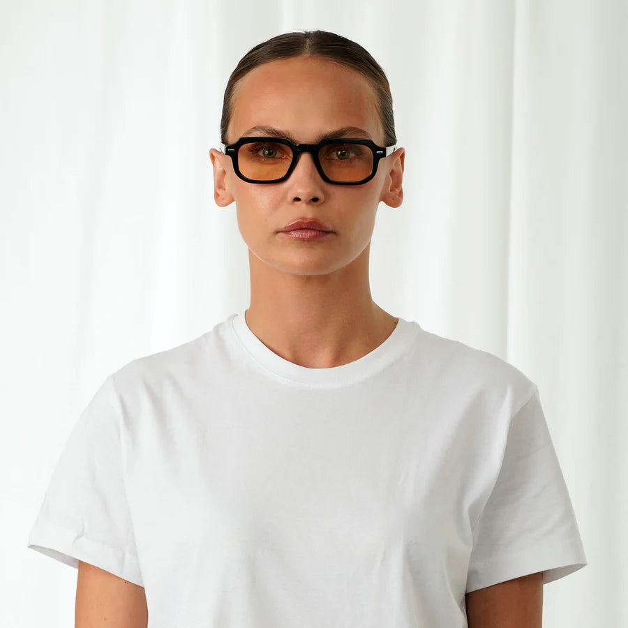 De Dust zonnebril is er voor wie houdt van understatement met klasse. De lichte beige glazen geven een zachte uitstraling en zorgen voor comfort bij fel licht, terwijl het zwarte frame structuur en contrast toevoegt.