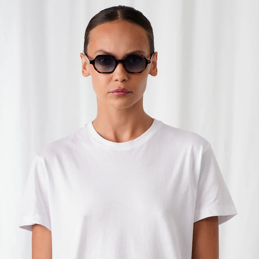 De Echo zonnebril spreekt zonder woorden. Met zijn unieke achthoekige vorm en levendige blauwe glazen is dit een bril met karakter. Het tortoise montuur geeft warmte en klassiek contrast — perfect voor wie niet op zoek is naar “gewoon een zonnebril.”