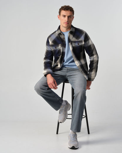 Ga voor een stoere maar verzorgde look met deze heren overhemdjas in blauw-wit ruitpatroon. Gemaakt van een zachte stof met flanel look, ideaal om als lichte jas of als extra laag te dragen. De knoopsluiting en borstzakken geven de jas een casual uitstraling, terwijl de comfortabele pasvorm zorgt dat je hem makkelijk combineert met jeans of een T-shirt. Met 30 dagen retourgarantie shop je altijd zorgeloos.