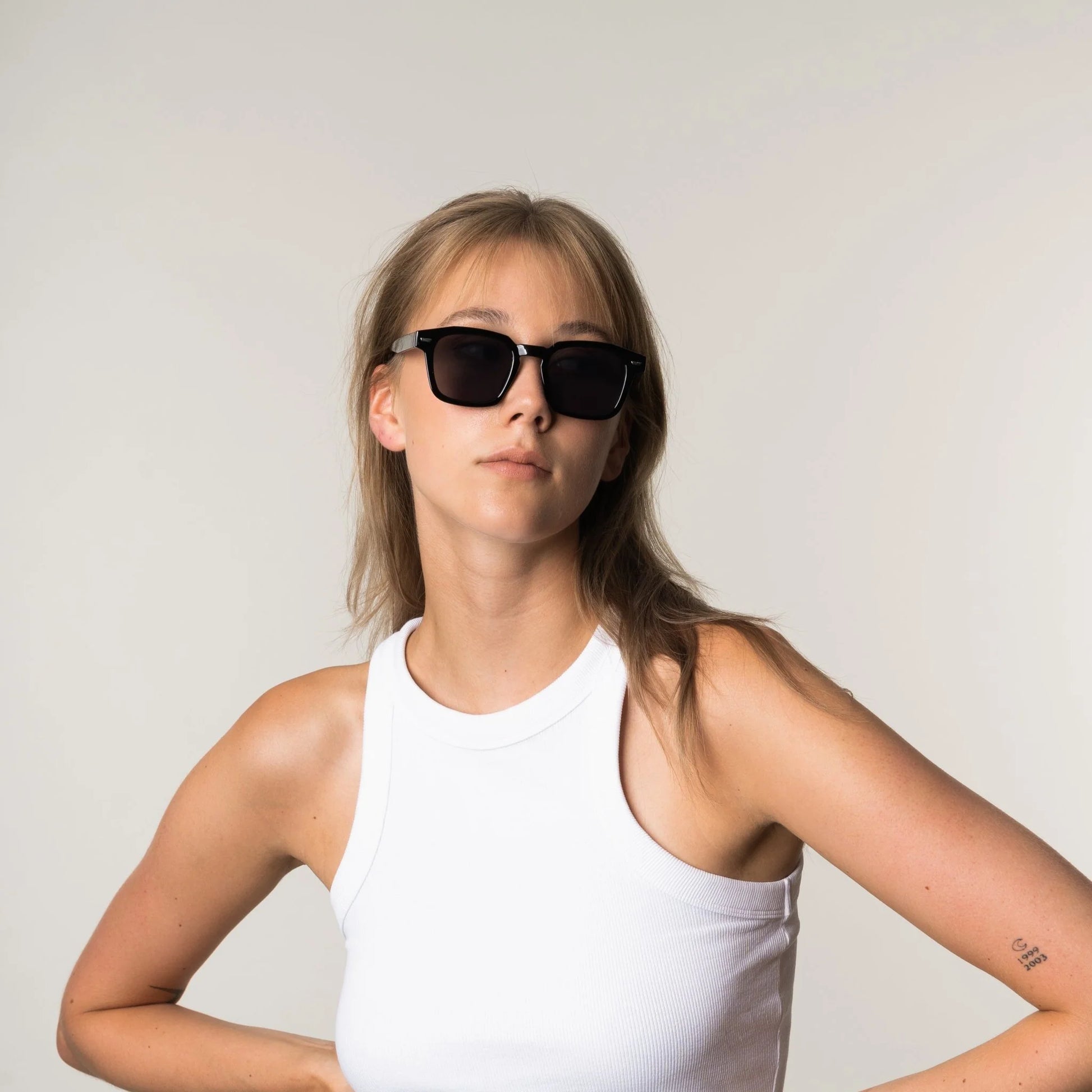 De Noir zonnebril is gemaakt voor wie houdt van pure klasse. Met zijn volledig zwarte montuur en diepdonkere glazen straalt deze bril mysterie, stijl en zelfvertrouwen uit — zonder woorden.