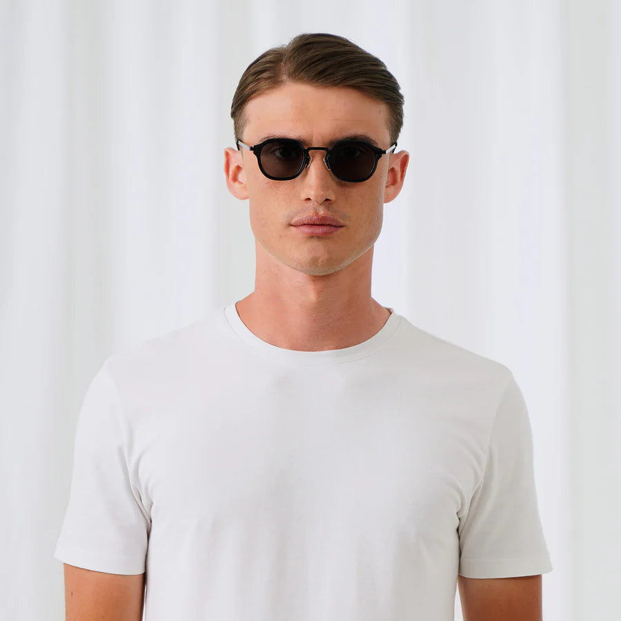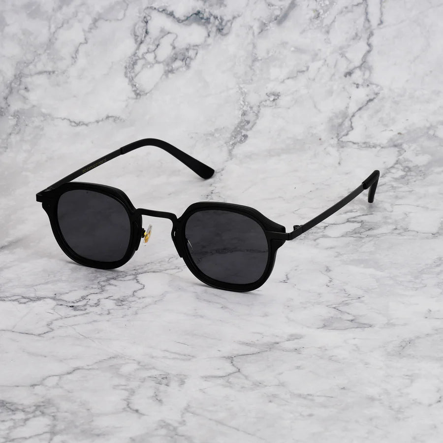 Met zijn gitzwarte frame en diep getinte smoke-glazen straalt deze zonnebril pure autoriteit, vastberadenheid en rustuit.
