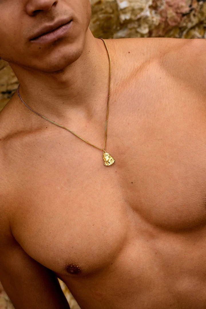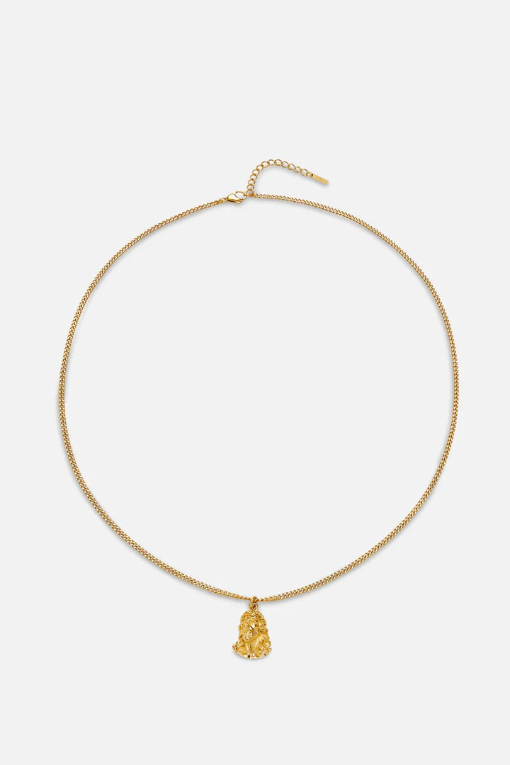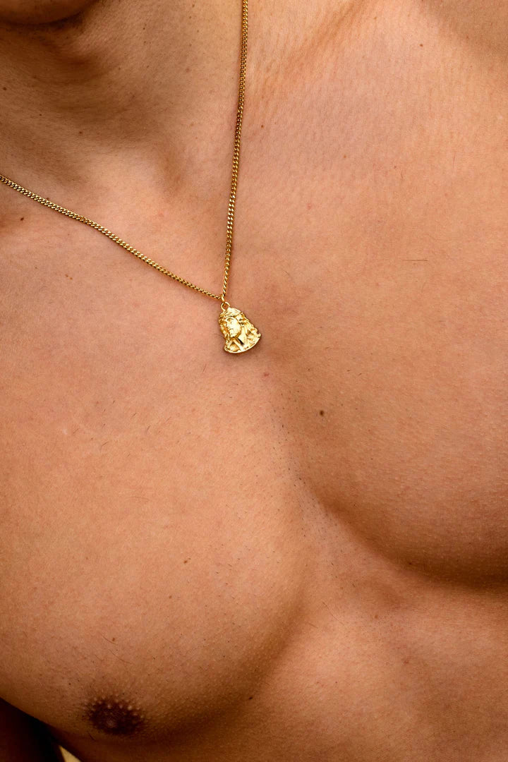 De Kevin ketting is een bijzonder accessoire met een gouden nymph-hanger, geïnspireerd op mythologie en natuurlijke schoonheid. Een uniek sieraad dat kracht en elegantie verenigt.